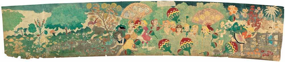Ti offriamo una riproduzione artigianale su tela dell'opera famosa '195 State invano attaccato dai soldati Glandelinian invisibili i' di Henry Darger, dal Museo delle Riproduzioni.