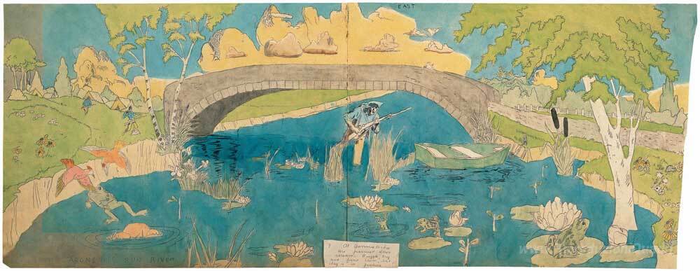Scoprite l'incanto di un'opera unica, 3 Al Jennie Richee sono persued a valle, realizzata dal geniale artista Henry Darger. Questo dipinto a olio cattura l'immaginazione con una narrazione visiva che si intreccia tra realtà e fantasia, riflettendo il profondo mondo interiore dell'artista. Darger, una figura emblematica del ventesimo secolo, utilizza una palette vibrante e una ricca texture per evocare emozioni che parlano direttamente all'anima di chi osserva.