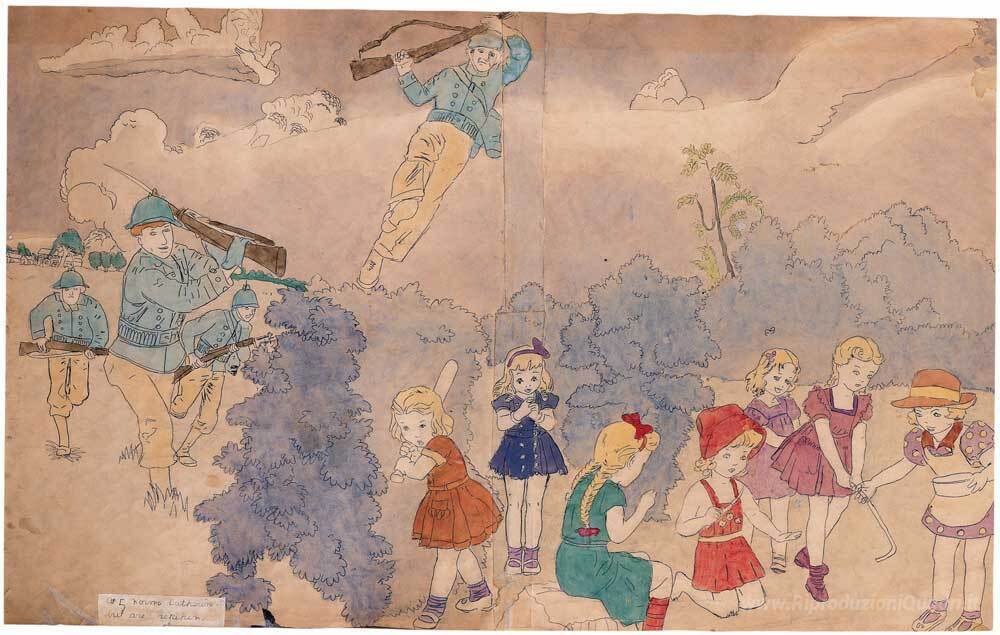 Benvenuti nel nostro angolo dedicato ai magnifici dipinti a olio italiani, dove l'arte si fonde con la storia e l'emozione. Oggi vi presentiamo A 5 Norma Caterina. Ma sono ripetuto, un'opera straordinaria dell'artista Henry Darger, noto per il suo stile unico e visionario. Darger, un vero e proprio outsider artist, ha saputo catturare l'immaginazione attraverso una narrazione visiva profonda, immerse in tonalità vibranti e dettagli meticolosi.