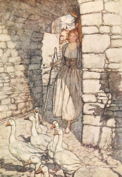 Ti offriamo una riproduzione artigianale su tela dell'opera famosa 'Ahimè! cara Falada, là tu Hangest' di Arthur Rackham, dal Museo delle Riproduzioni.
