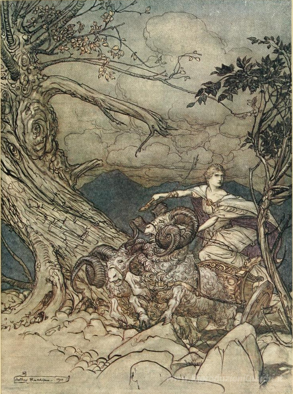 Ti offriamo una riproduzione artigianale su tela dell'opera famosa 'Approcci Fricka in rabbia' di Arthur Rackham, dal Museo delle Riproduzioni.