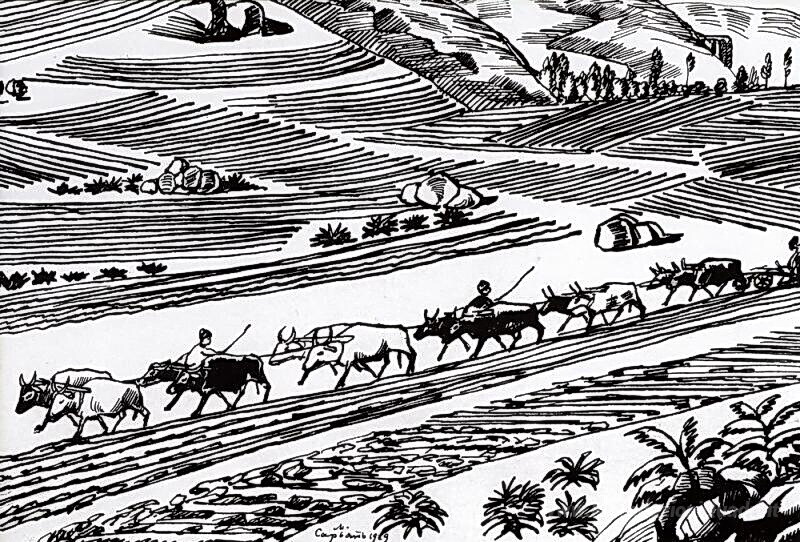 Ti offriamo una riproduzione artigianale su tela dell'opera famosa 'Aratura' di Martiros Saryan, dal Museo delle Riproduzioni.