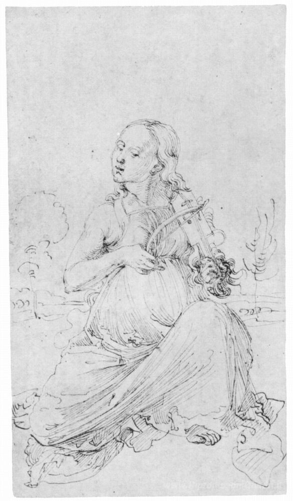Ti offriamo una riproduzione artigianale su tela dell'opera famosa 'Attingendo la "Tarocchi" The Muse Thalia' di Albrecht Durer, dal Museo delle Riproduzioni.