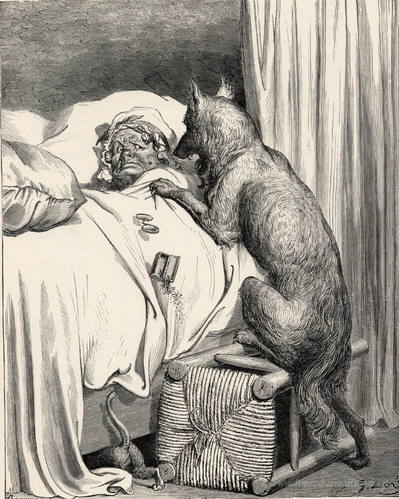 Ti offriamo una riproduzione artigianale su tela dell'opera famosa 'Balzò unpon la vecchia e la divorò' di Gustave Dore, dal Museo delle Riproduzioni.