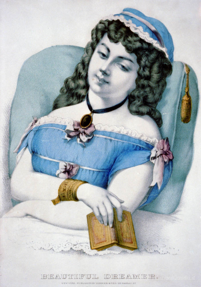 Ti offriamo una riproduzione artigianale su tela dell'opera famosa 'Beautiful Dreamer' di Currier and Ives, dal Museo delle Riproduzioni.