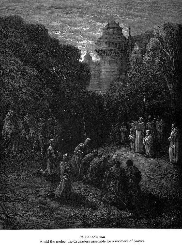 Ti offriamo una riproduzione artigianale su tela dell'opera famosa 'Benedizione' di Gustave Dore, dal Museo delle Riproduzioni.