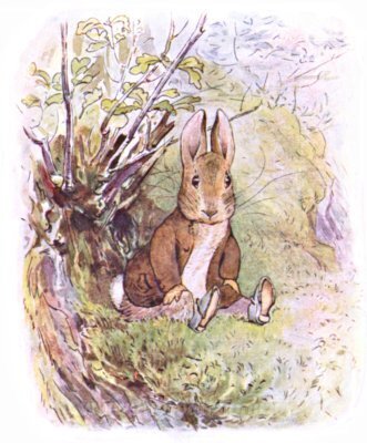 Ti offriamo una riproduzione artigianale su tela dell'opera famosa 'Benjamin Bunny' di Beatrix Potter, dal Museo delle Riproduzioni.
