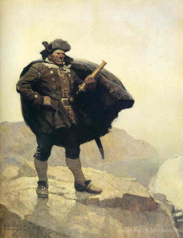 Ti offriamo una riproduzione artigianale su tela dell'opera famosa 'Billy Bones' di N.C. Wyeth, dal Museo delle Riproduzioni.