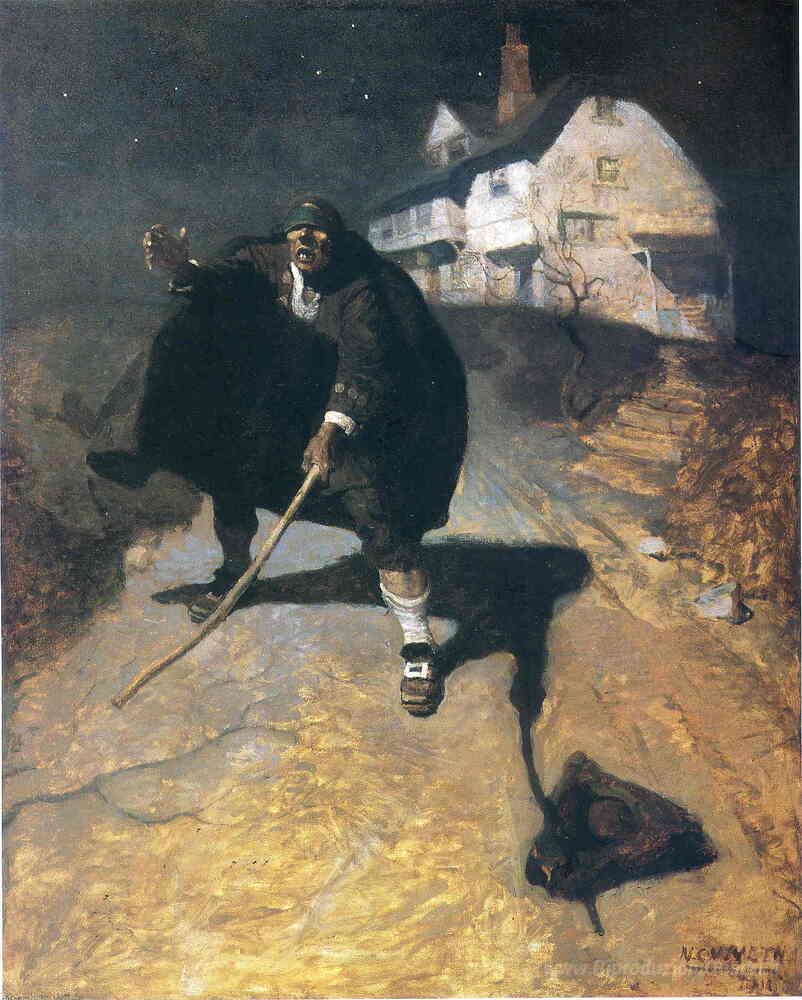Scoprite l'incanto dei dipinti a olio italiani, vere e proprie opere d'arte che arricchiscono ogni ambiente con eleganza e stile. Tra le creazioni più affascinanti, vi presentiamo Cieco Pew dell'artista N.C. Wyeth, maestro capace di trasformare emozioni e storie in colori vibranti. Questo dipinto, che cattura l'essenza di un'epoca, si distingue per la sua rappresentazione simbolica e il sapiente uso della luce e dell'ombra.