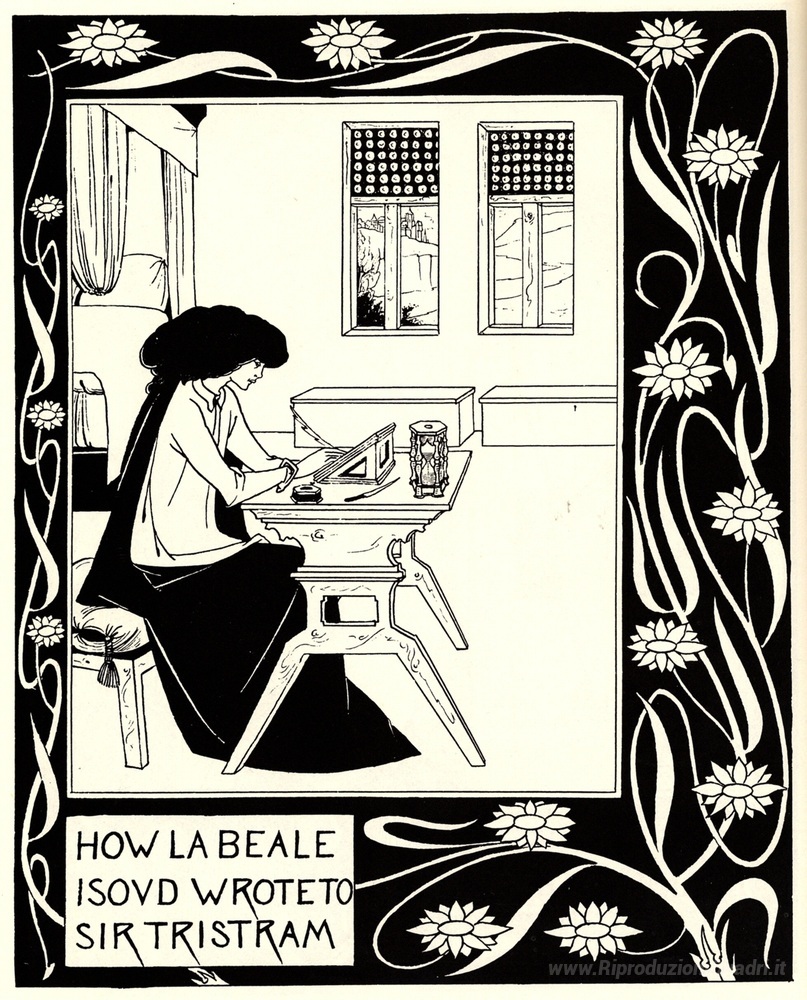 Ti offriamo una riproduzione artigianale su tela dell'opera famosa 'Come La Beale Isoud scritto a Sir Tristram' di Aubrey Beardsley, dal Museo delle Riproduzioni.
