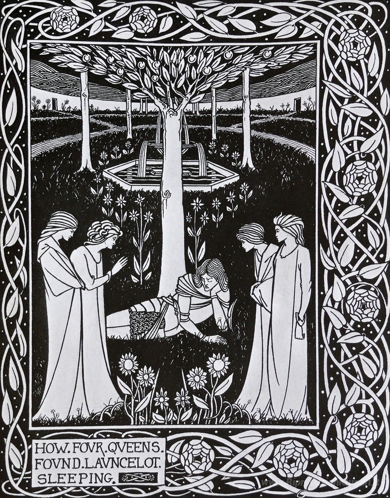 Ti offriamo una riproduzione artigianale su tela dell'opera famosa 'Come quattro regine trovato Lancillotto Sleeping' di Aubrey Beardsley, dal Museo delle Riproduzioni.