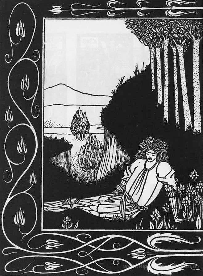 Immergetevi nell'arte raffinata di Aubrey Beardsley, un maestro del simbolismo e del decoro, noto per il suo stile audace e le sue composizioni incantevoli. Il dipinto “Come Re Marco e Dinadan Heard Sir Palomides I” è un esempio straordinario della sua abilità di catturare momenti evocativi attraverso un uso sapiente dell'olio, un medium che permette una profondità e una ricchezza di dettagli senza pari. La sua iconica eleganza e il tocco delicato rendono questa opera una vera delizia per gli occhi.