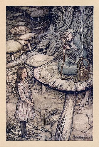 Ti offriamo una riproduzione artigianale su tela dell'opera famosa 'Consigli di un Caterpillar' di Arthur Rackham, dal Museo delle Riproduzioni.