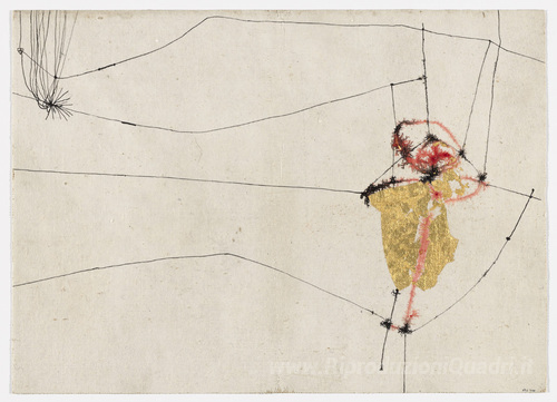 Ti offriamo una riproduzione artigianale su tela dell'opera famosa 'Copertura per 17 Variazioni su Temi Proposti per Una pura ideolo' di Alberto Burri, dal Museo delle Riproduzioni.