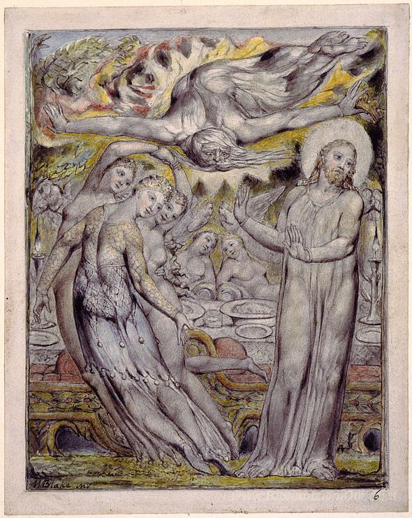 Ti offriamo una riproduzione artigianale su tela dell'opera famosa 'Cristo rifiutando il banchetto offerto da Satana' di William Blake, dal Museo delle Riproduzioni.