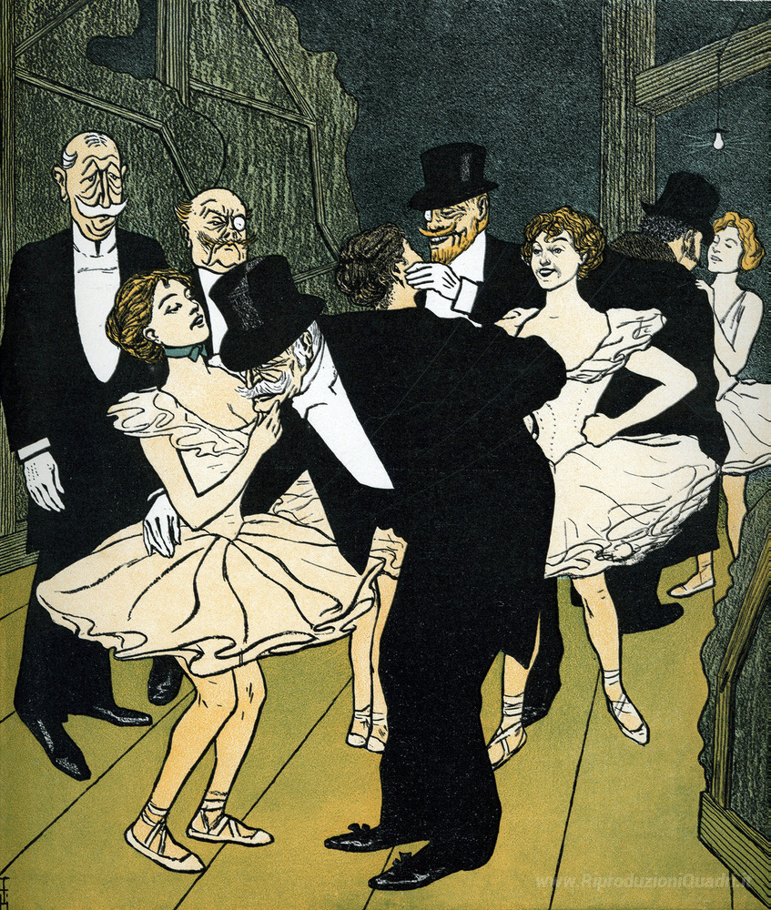 Ti offriamo una riproduzione artigianale su tela dell'opera famosa 'da Thorheiten' di Thomas Theodor Heine, dal Museo delle Riproduzioni.