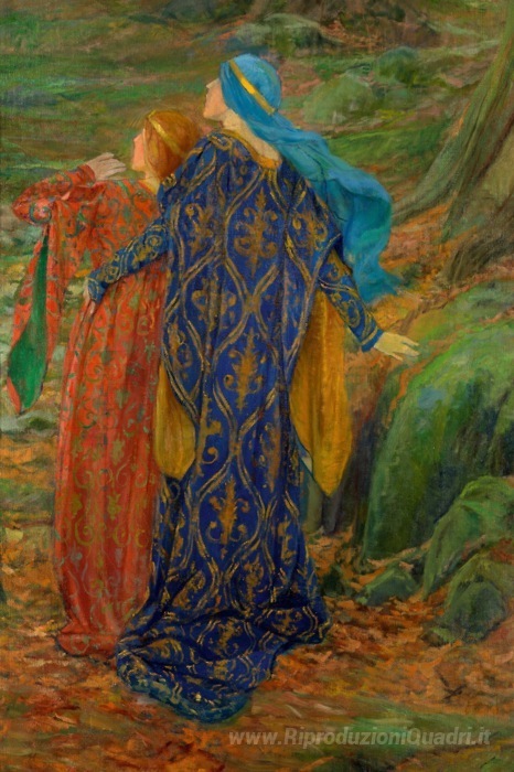 Ti offriamo una riproduzione artigianale su tela dell'opera famosa 'Dans la crainte' di Edwin Austin Abbey, dal Museo delle Riproduzioni.
