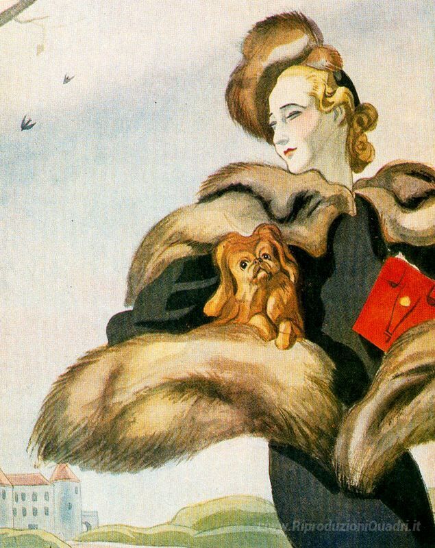 Ti offriamo una riproduzione artigianale su tela dell'opera famosa 'Disegno per rivista di moda 'Elegance'' di Carlos Saenz de Tejada, dal Museo delle Riproduzioni.