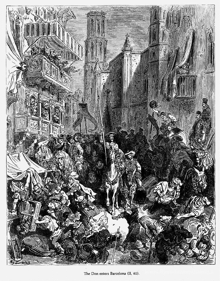 Ti offriamo una riproduzione artigianale su tela dell'opera famosa 'Don Chisciotte' di Gustave Dore, dal Museo delle Riproduzioni.