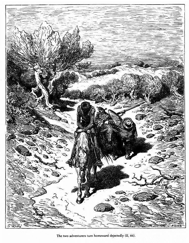 Ti offriamo una riproduzione artigianale su tela dell'opera famosa 'Don Chisciotte' di Gustave Dore, dal Museo delle Riproduzioni.