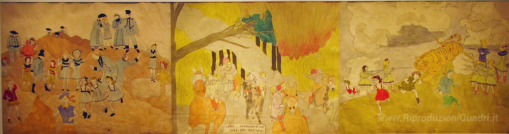 Ti offriamo una riproduzione artigianale su tela dell'opera famosa 'Dopo Osmondonson sono salvati' di Henry Darger, dal Museo delle Riproduzioni.