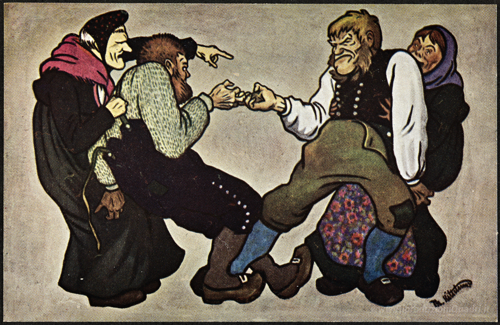 Ti offriamo una riproduzione artigianale su tela dell'opera famosa 'Dumme Menn og troll fino kjerringer' di Theodor Severin Kittelsen, dal Museo delle Riproduzioni.