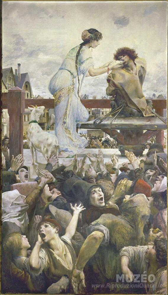 Ti offriamo una riproduzione artigianale su tela dell'opera famosa 'Esmeralda e Quasimodo' di Luc-Olivier Merson, dal Museo delle Riproduzioni.