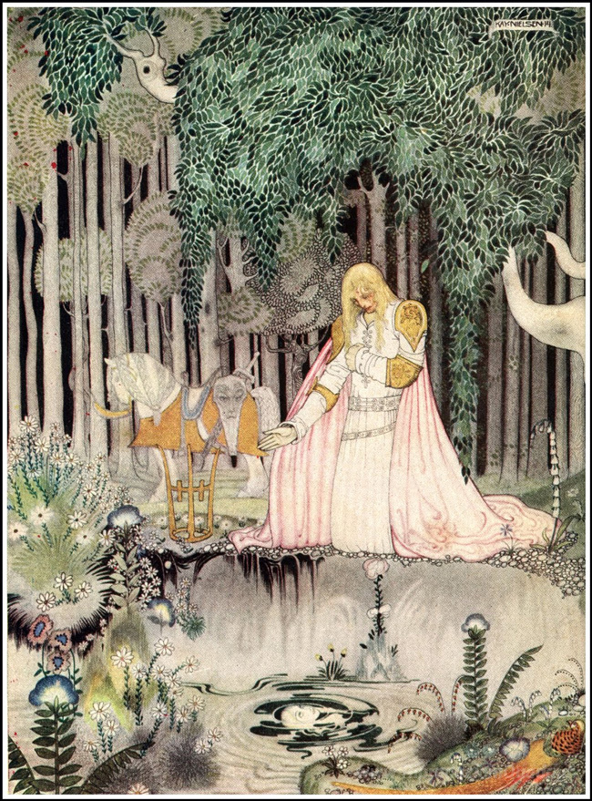 Ti offriamo una riproduzione artigianale su tela dell'opera famosa 'Est del Sole e occidente della luna' di Kay Nielsen, dal Museo delle Riproduzioni.