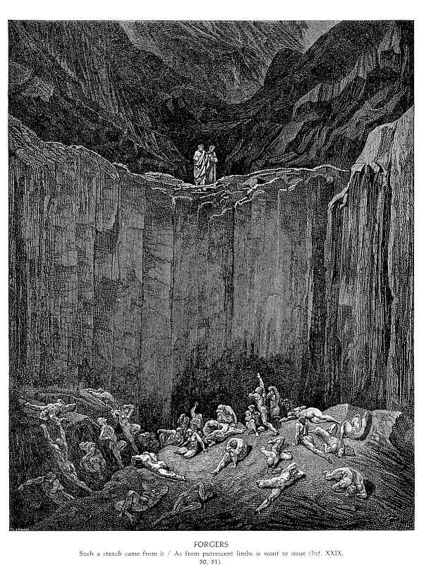 Ti offriamo una riproduzione artigianale su tela dell'opera famosa 'Falsari' di Gustave Dore, dal Museo delle Riproduzioni.