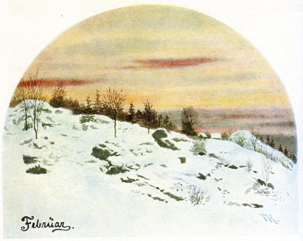 Ti offriamo una riproduzione artigianale su tela dell'opera famosa 'Febbraio' di Theodor Severin Kittelsen, dal Museo delle Riproduzioni.
