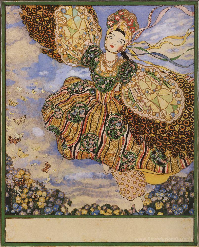 Ti offriamo una riproduzione artigianale su tela dell'opera famosa 'Firebird. Copertina del libro' di Konstantin Somov, dal Museo delle Riproduzioni.