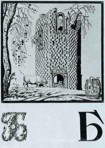 Ti offriamo una riproduzione artigianale su tela dell'opera famosa 'Foglio 'B' dall'album 'alfabeto ucraino'' di Heorhiy Narbut, dal Museo delle Riproduzioni.