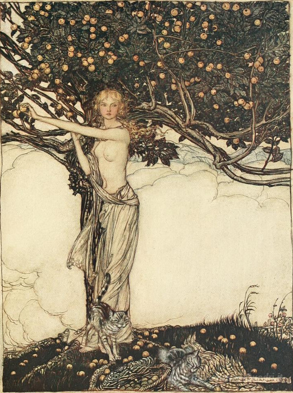 Ti offriamo una riproduzione artigianale su tela dell'opera famosa 'Freia, la fiera uno' di Arthur Rackham, dal Museo delle Riproduzioni.
