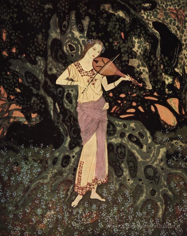 Ti offriamo una riproduzione artigianale su tela dell'opera famosa 'Fuori di questo mondo (Ladri di Luce per la regina di Romania)' di Edmund Dulac, dal Museo delle Riproduzioni.