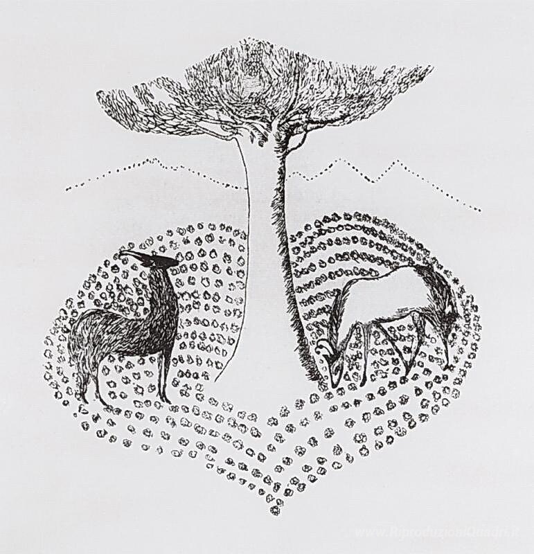 Ti offriamo una riproduzione artigianale su tela dell'opera famosa 'Gazzelle vicino l'albero' di Martiros Saryan, dal Museo delle Riproduzioni.