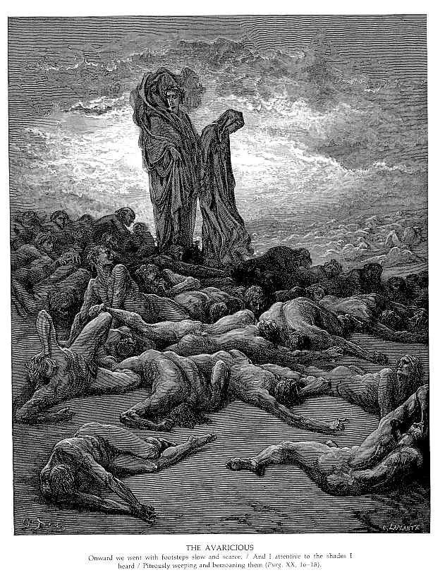 Ti offriamo una riproduzione artigianale su tela dell'opera famosa 'Gli avari' di Gustave Dore, dal Museo delle Riproduzioni.
