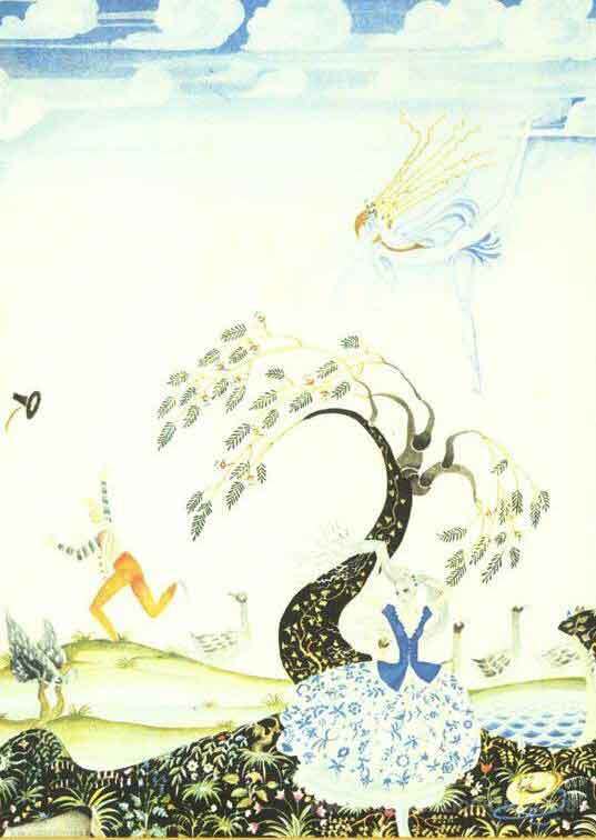 Ti offriamo una riproduzione artigianale su tela dell'opera famosa 'Goosegirl' di Kay Nielsen, dal Museo delle Riproduzioni.