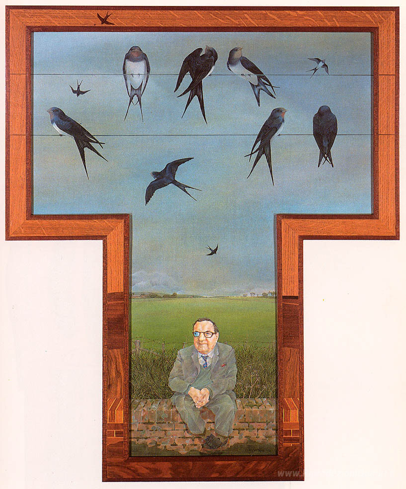Ti offriamo una riproduzione artigianale su tela dell'opera famosa 'Guardando il Swallows Go' di Kit Williams, dal Museo delle Riproduzioni.