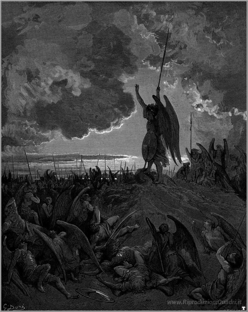 Ti offriamo una riproduzione artigianale su tela dell'opera famosa 'Hanno sentito, ed erano imbarazzati, e fino essi nacquero' di Gustave Dore, dal Museo delle Riproduzioni.