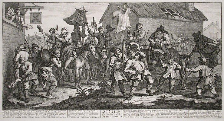 Ti offriamo una riproduzione artigianale su tela dell'opera famosa 'Hudibras incontra il Skimmington, da 'Hudibras', da Samuel Butle' di William Hogarth, dal Museo delle Riproduzioni.