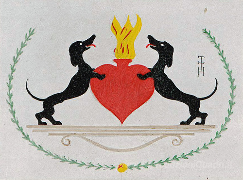 Ti offriamo una riproduzione artigianale su tela dell'opera famosa 'I due bassotti' di Thomas Theodor Heine, dal Museo delle Riproduzioni.