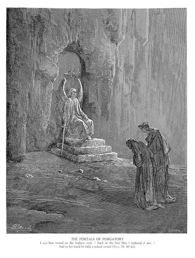 Ti offriamo una riproduzione artigianale su tela dell'opera famosa 'I Portali del Purgatorio' di Gustave Dore, dal Museo delle Riproduzioni.