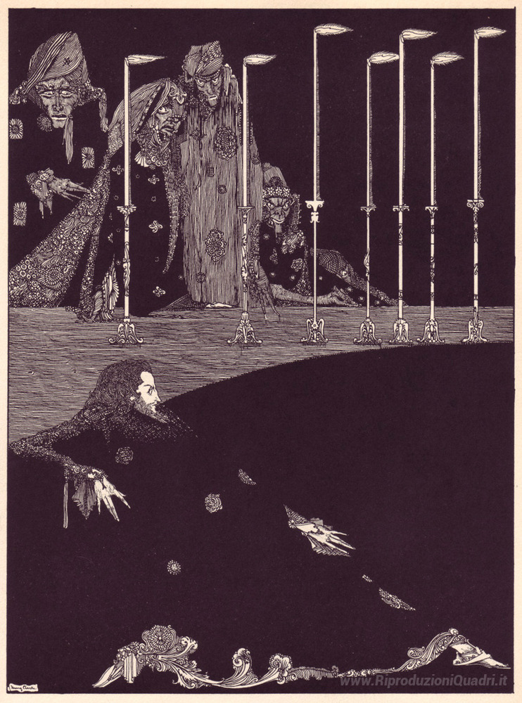Ti offriamo una riproduzione artigianale su tela dell'opera famosa 'I racconti del mistero e del terrore di Edgar Allan Poe' di Harry Clarke, dal Museo delle Riproduzioni.