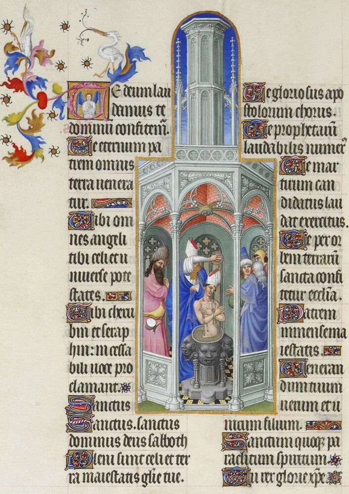 Ti offriamo una riproduzione artigianale su tela dell'opera famosa 'Il Battesimo di Sant'Agostino' di Limbourg brothers, dal Museo delle Riproduzioni.