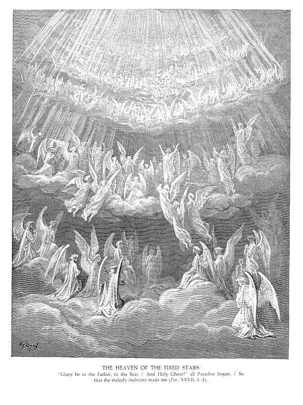 Ti offriamo una riproduzione artigianale su tela dell'opera famosa 'Il Cielo delle Stelle Fisse II' di Gustave Dore, dal Museo delle Riproduzioni.