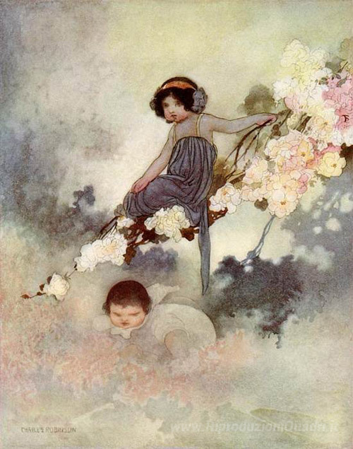 Ti offriamo una riproduzione artigianale su tela dell'opera famosa 'Il gigante egoista' di Charles Robinson, dal Museo delle Riproduzioni.