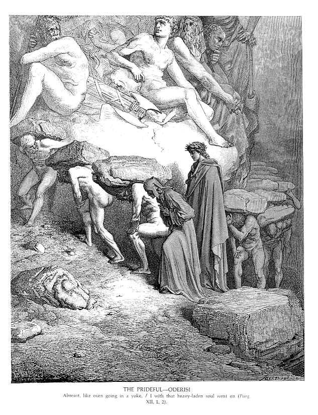 Ti offriamo una riproduzione artigianale su tela dell'opera famosa 'Il Orgogliosi - Oderisi' di Gustave Dore, dal Museo delle Riproduzioni.