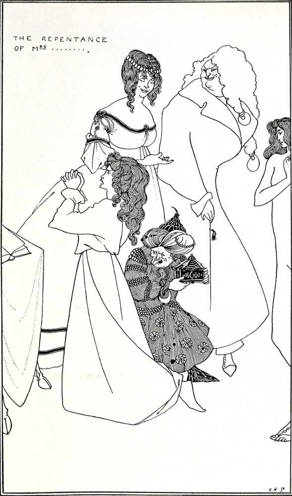 Ti offriamo una riproduzione artigianale su tela dell'opera famosa 'Il pentimento della signora ...' di Aubrey Beardsley, dal Museo delle Riproduzioni.