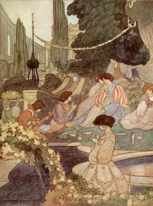 Ti offriamo una riproduzione artigianale su tela dell'opera famosa 'Il principe felice' di Charles Robinson, dal Museo delle Riproduzioni.