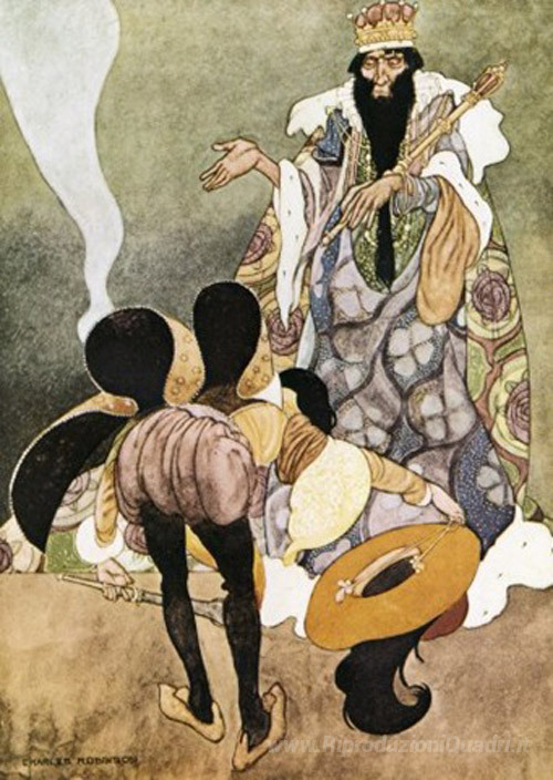 Ti offriamo una riproduzione artigianale su tela dell'opera famosa 'Il principe felice' di Charles Robinson, dal Museo delle Riproduzioni.